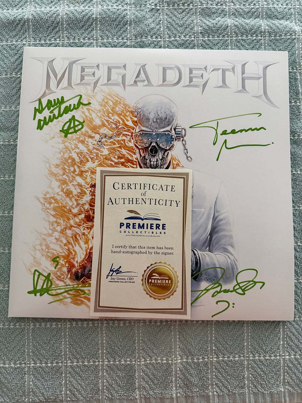 Megadeth Opa Ocean Blue Splatter Vinyl Green Ink Signed JSA Certified #31 Of 49